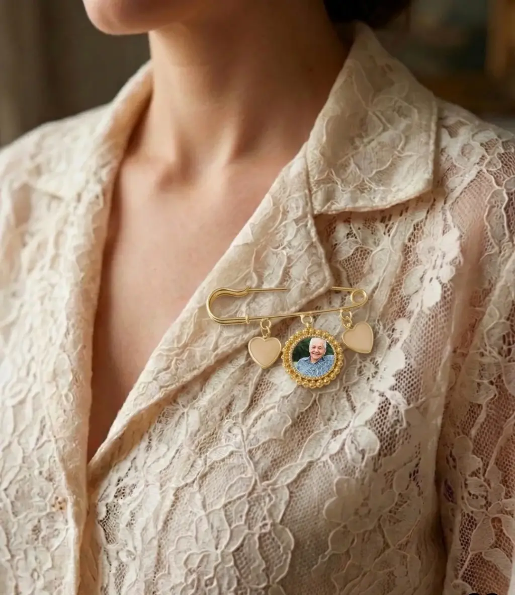 Anı İğnesi Kalp Detaylı Çift Fotoğraflı