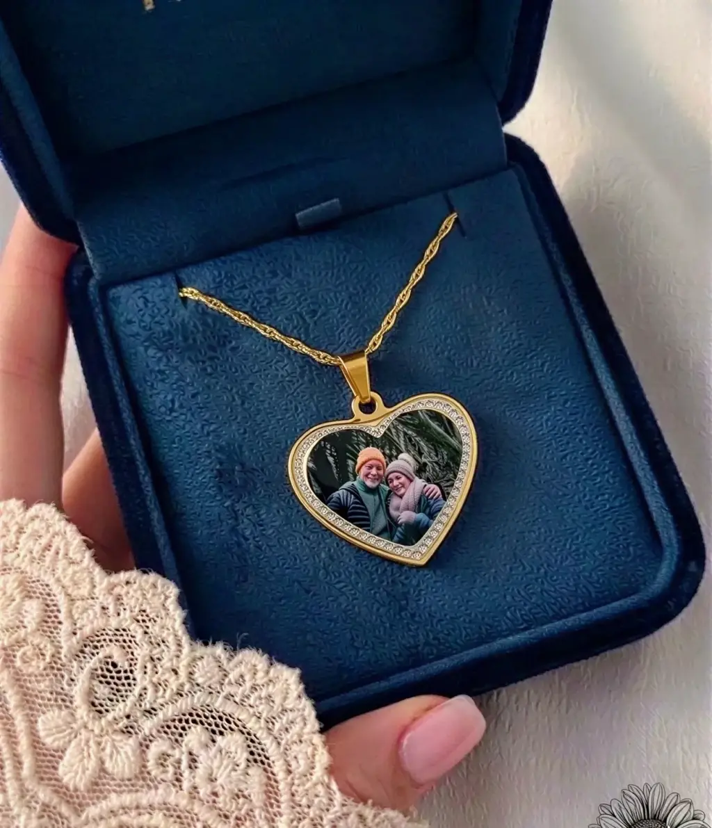 Kalpli Anı Kolyesi Fotoğraflı Yazı detaylı