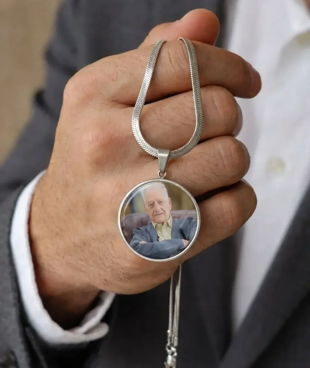 Fotoğraflı Kolye Gümüş Renk Yazı Detaylı