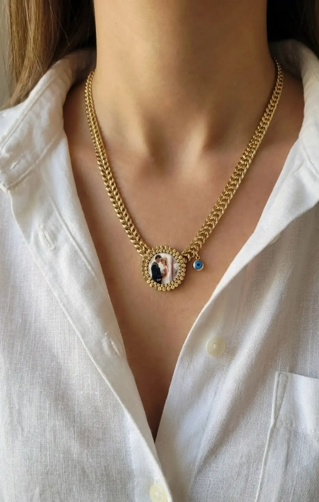 Fotoğraflı Kolye İtalyan Zincir Silver Renk