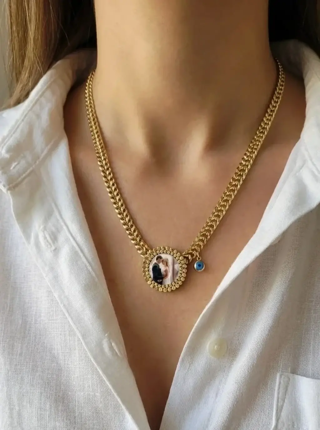Fotoğraflı Kolye İtalyan Zincir Gümüş Renk