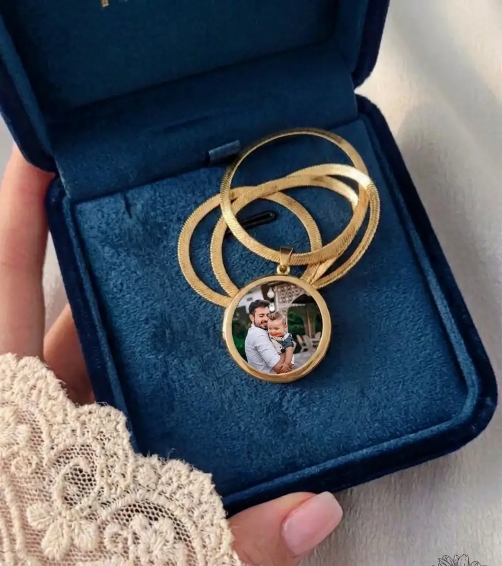 Çift Fotoğraflı Anı Kolyesi İtalyan Zincir Gold