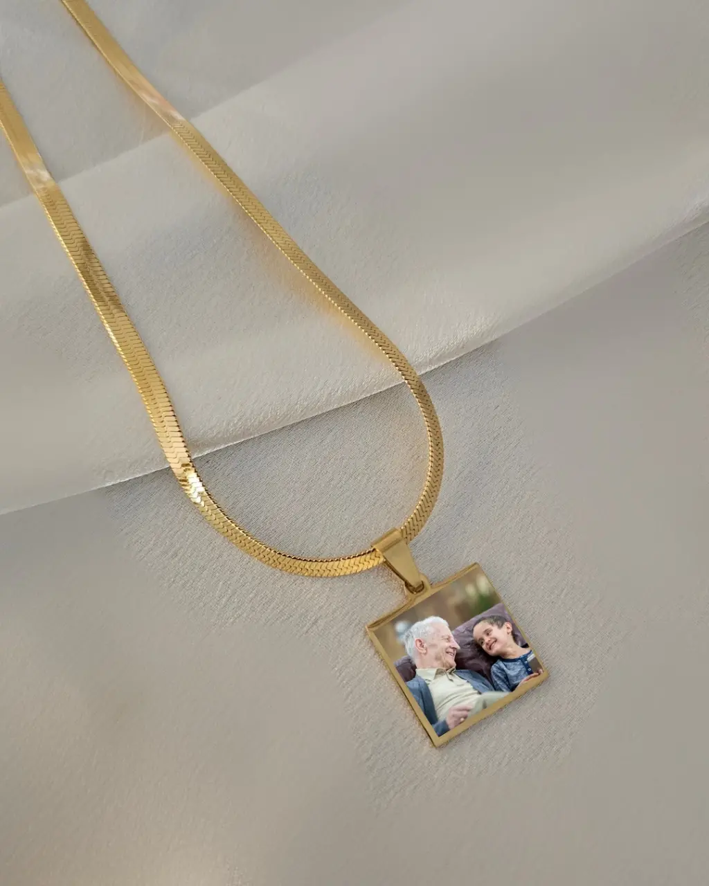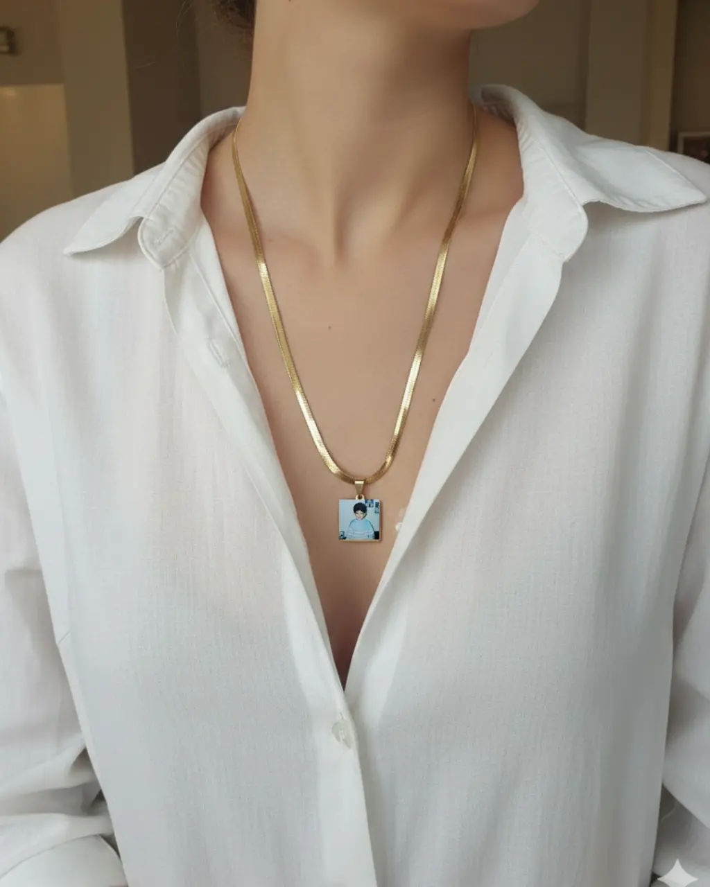 Italyan zincir kare anı kolyesi