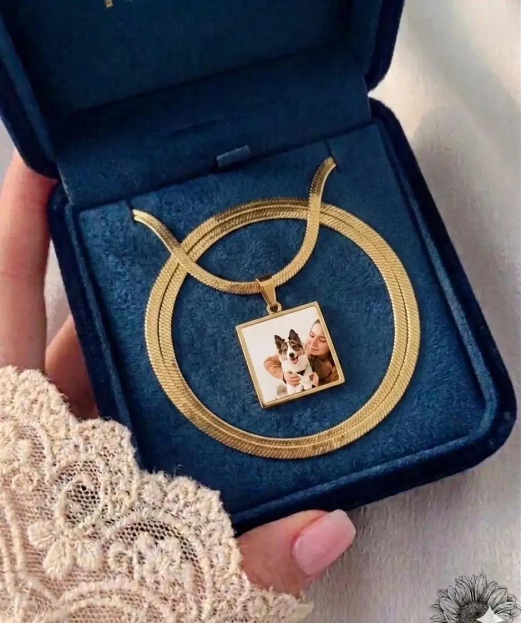 Fotoğraflı Kolye İtalyan Zincir Gümüş Renk