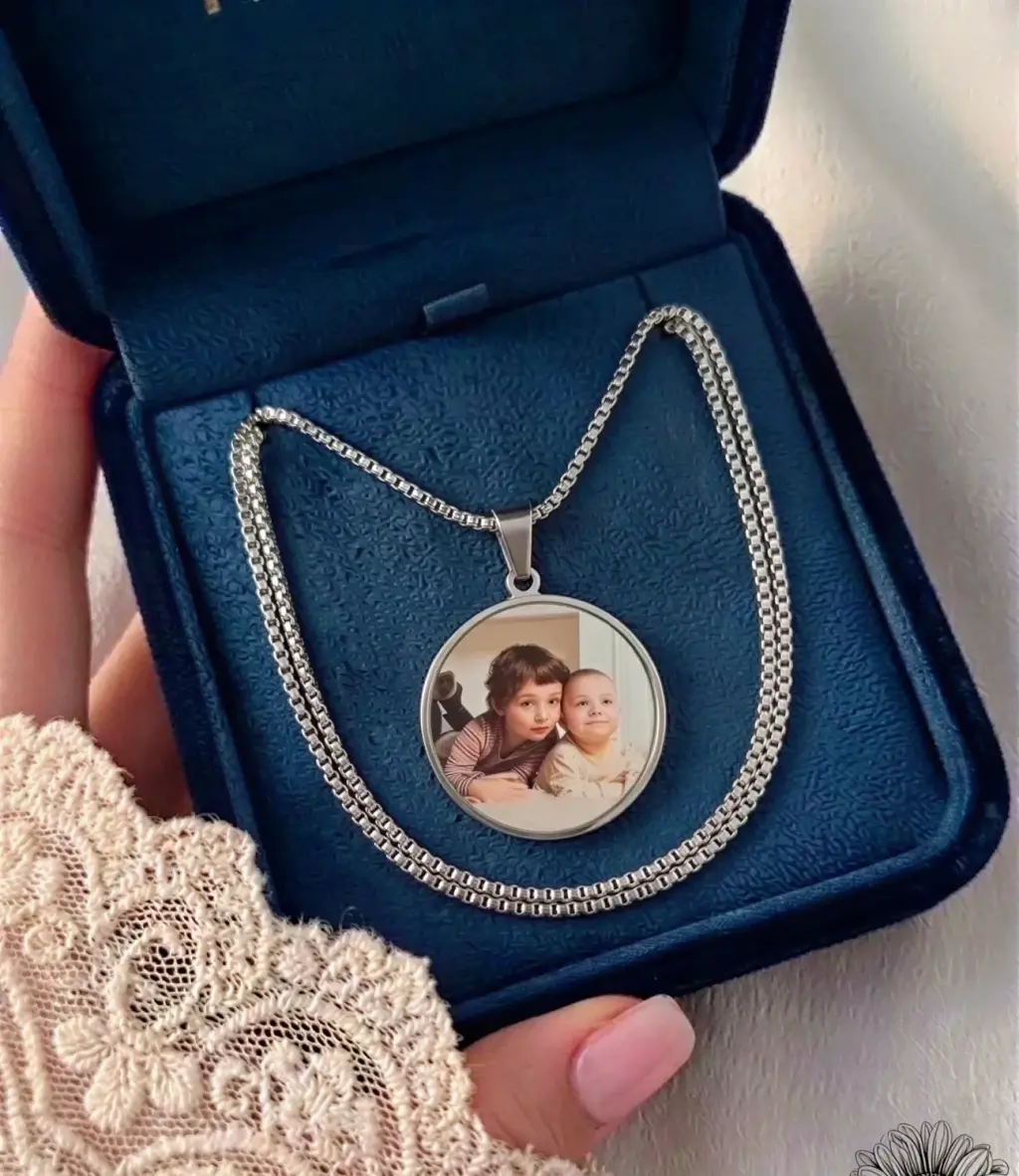 Fotoğraflı Kolye Gümüş Renk Yazı Detaylı