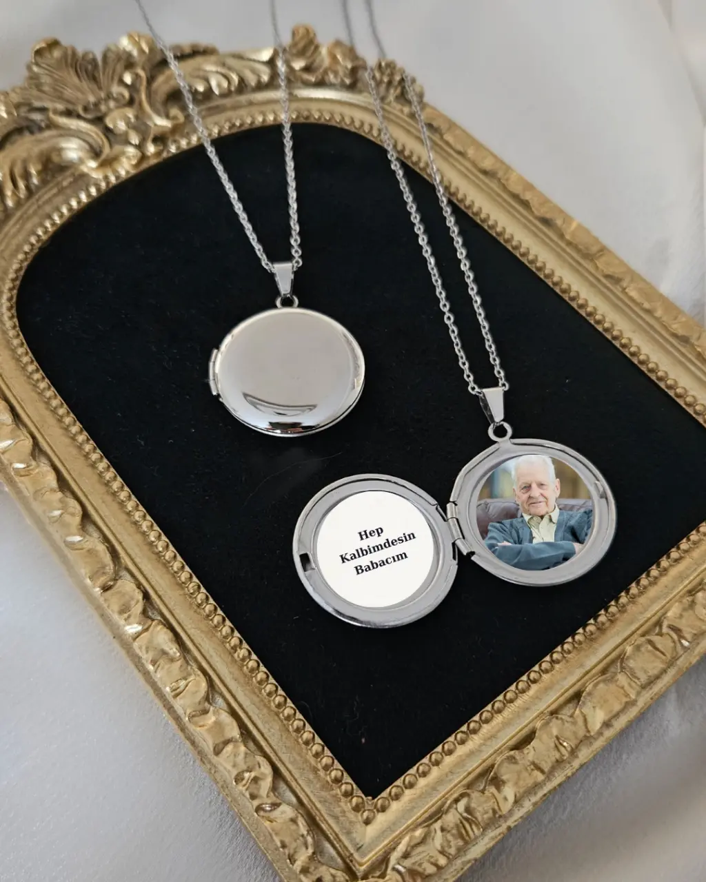 Fotoğraflı Kolye Silver Renk Çift Fotoğraflı